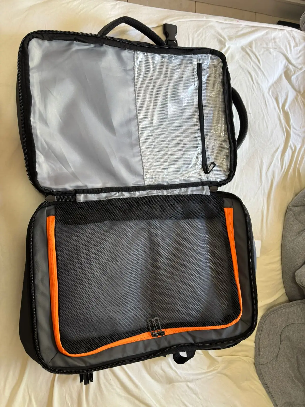 Sein erweiterbares Volumen von 36 bis 45 Litern ermöglicht es, den Stauraum flexibel an Ihre Bedürfnisse anzupassen.